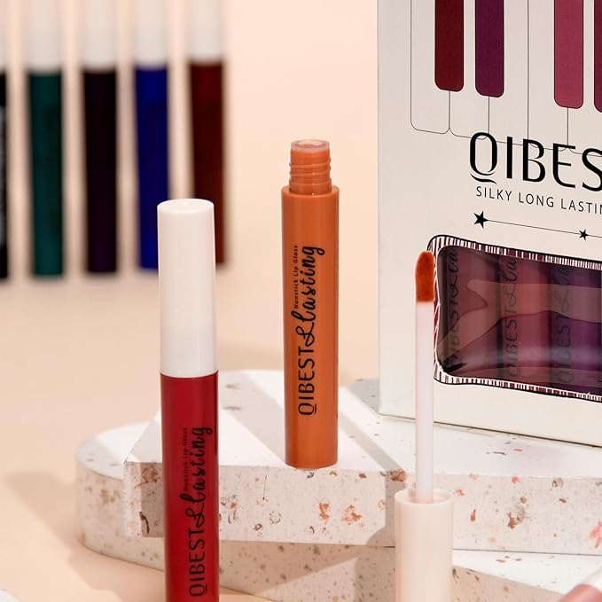 12Pcs Makeup Matte Lipstick Lip Kit, Warm Neutrals & Vintage Reds Non-Stick Cup Not Fade Liquid Lipstick Waterproof Long Lasting Durable Nude Lip Gloss Beauty Cosmetics Gift Box Makeup Set Kit