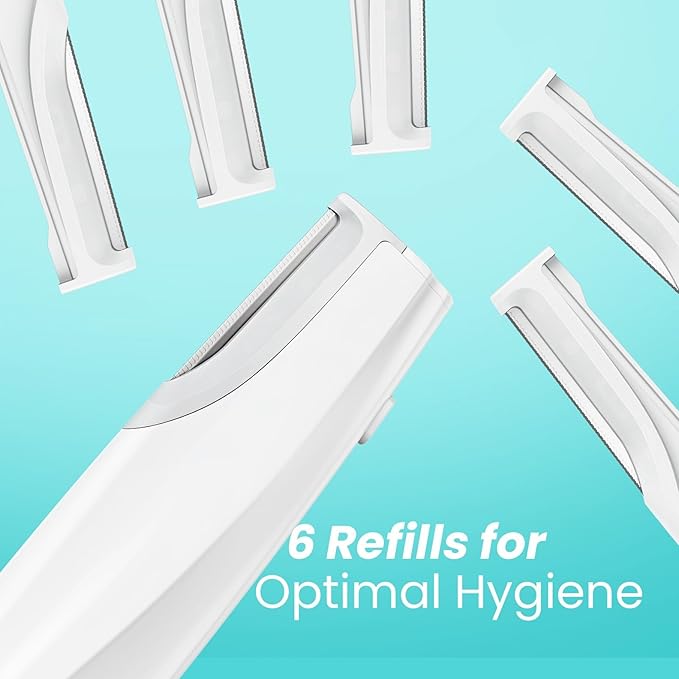 Sonic Dermaplaning Tool for Face - Rechargeable Dermaplane Razor with 6 Refill Dermablades, Facial Hair & Peach Fuzz Remover for Women (White)