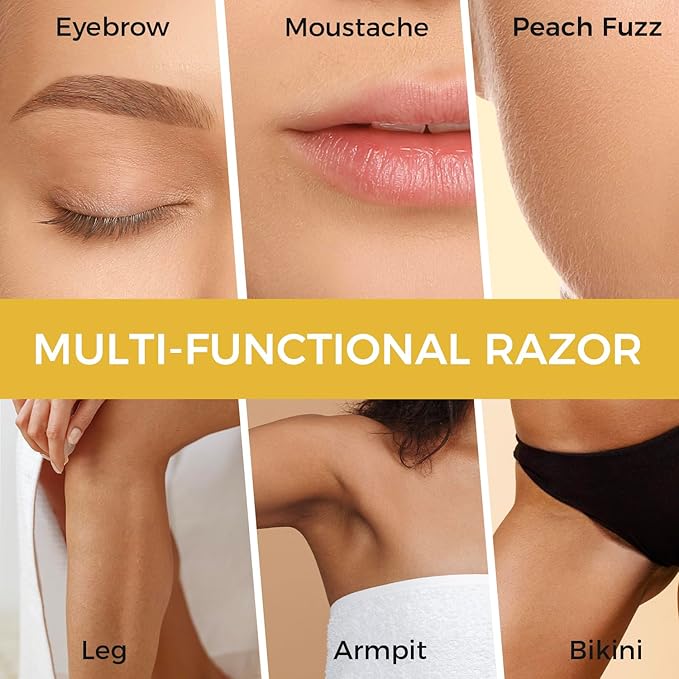- MULTI-FUNCTIONAL RAZOR: Beyond eyebrow shaping, this face razor can also deal with peach fuzz and facial hair removal as well as body hair, or even exfoliation for smoother skin, providing a multipurpose solution for all your needs. There are two kinds of blades included, micro blades and wide-exfoliating blades. Both for beginners and pros.