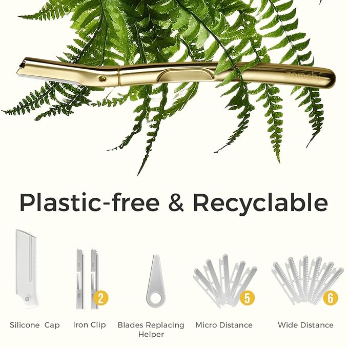 - REUSABLE DERMAPLNE TOOL: A stylish, precision dermaplaning tool with MATTE GOLD FINISH for perfectly eyebrow shaping. This dermaplane kit has been upgraded to be fully recyclable and more earth-friendly than plastic ones.
