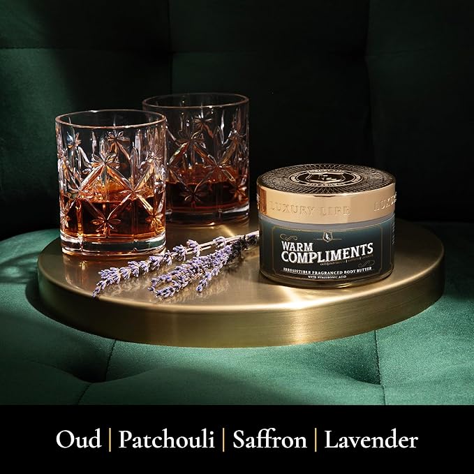 LUXURY LIFE Bed Butter - Scented, Luxurious Body Butter With All-Natural Hyaluronic Acid For Soft, Glowing, Hydrated Skin - For Men & Women - For All Skin Types - Warm Compliments Scent, 5 oz