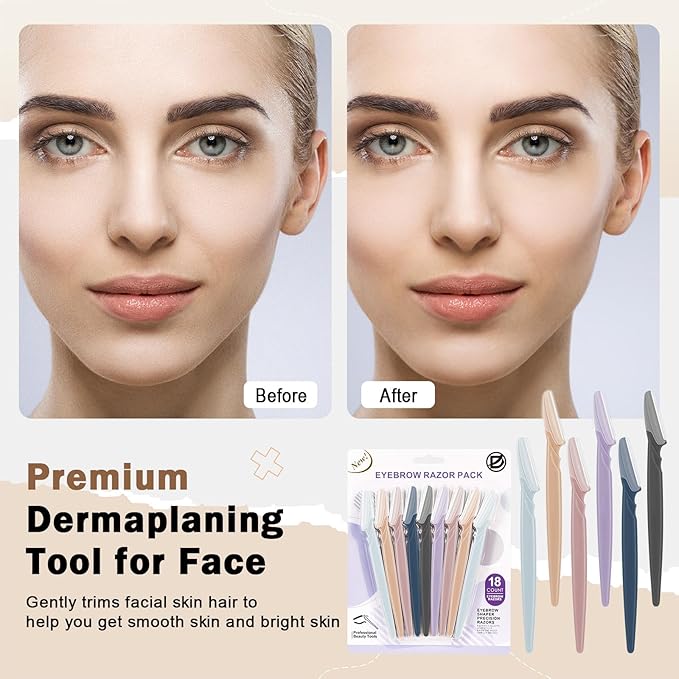 - 【Precision for Dermaplaning】The areolae surface on the cutting edge and the smaller size of these facial razors for women face are gentle enough to remove the peach fuzz and provide a precise dermaplaning experience. These face razors for women are also great for eyebrow shaping and hair removal for your body, providing a versatile solution for all your hair removal needs.