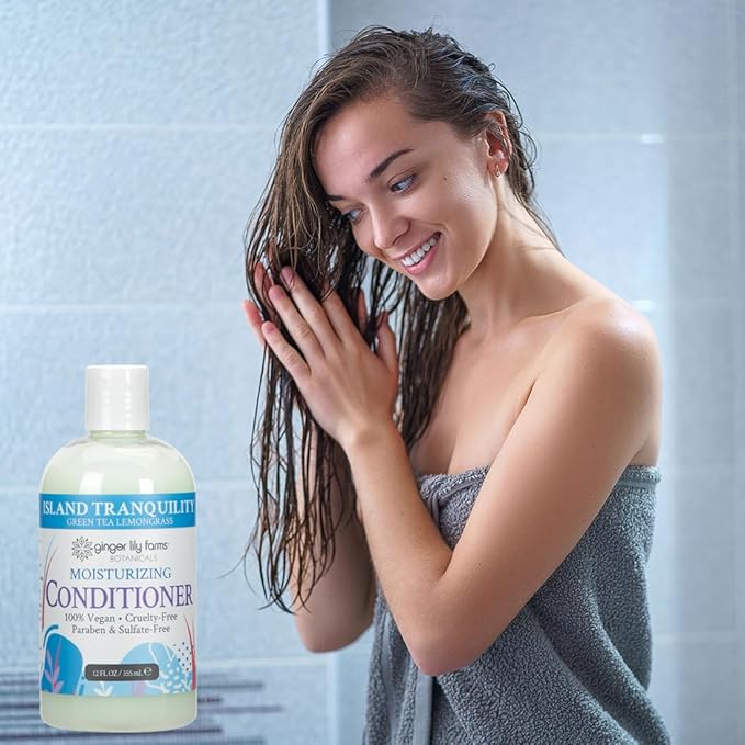 Ginger Lily Farms Botanicals Moisturizing Conditioner for Dry Hair, Island Tranquility, 100% Vegan & Cruelty-Free, Green Tea Lemongrass Scent, 12 Fl Oz (Pack of 6)