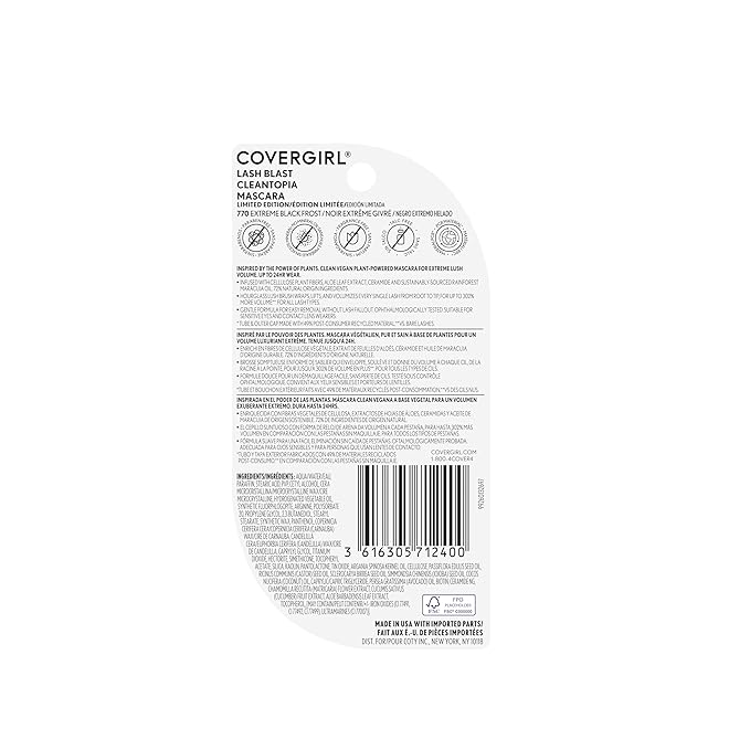 CoverGirl Lash Blast Cleantopia Mascara - Extreme Black Frost, Vegan, Volumizing, Sensitive Eyes, No Smudge, 0.32oz
