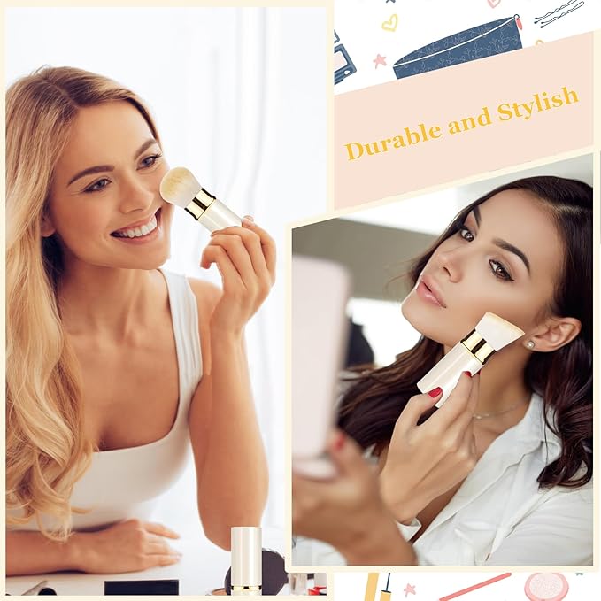 Makeup Brush, Retractable 2 Pack Travel Kabuki Powder Makeup Brush, Foundation Face Blush Brushes for Blending Liquid, Blush, Bronzer, Buffing, Sunscreen,Flawless Cosmetics