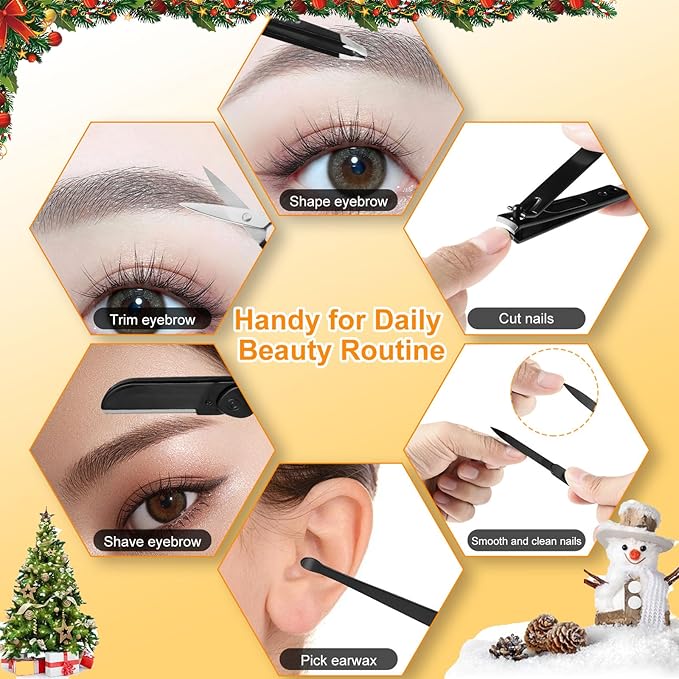 - Giftable Leather Case: Yougai nail clippers and tweezer kit comes with a luxurious compact pu leather case that is easily opened with a push of a button. You can carry it conveniently wherever you go, just put it in your handbag, car, and luggage and so on. This is nice daily beauty routine for travel or home use.Stocking Stuffers for Women Men Adults, Womens Gifts for Christmas White Elephant Gift
