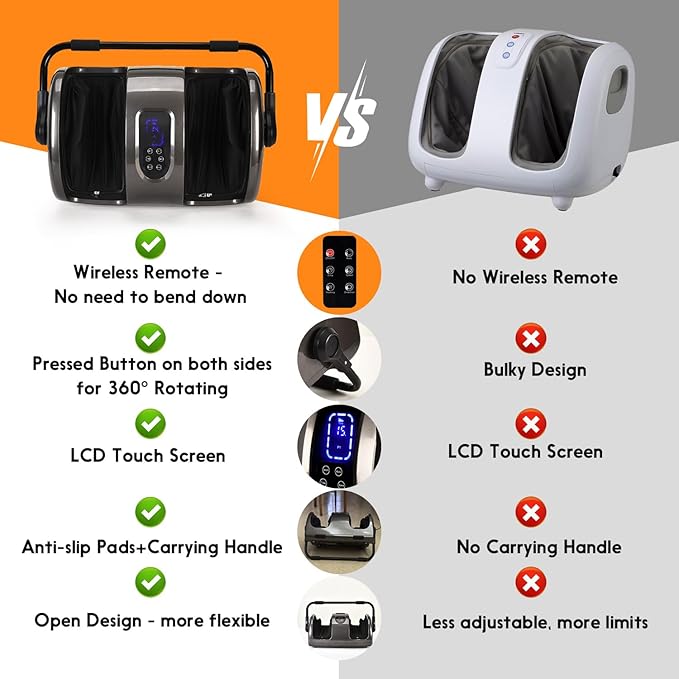 - 3. Easy to use by its clear visible LED screen and touch buttons control, also a wireless remote for no bending down any more! Wave goodbye to foot discomfort and unlock the secret to happy feet