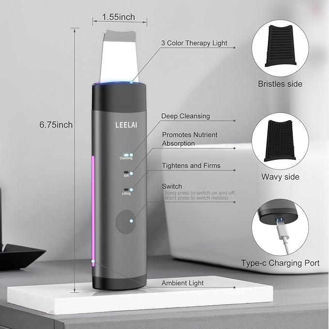 - Stylish Design: Boasting a sleek and trendy aesthetic, our face scraper features a minimalist metal body accentuated by soft LED ambient lighting. This creates a soothing and inviting ambiance for users, enhancing the enjoyment of the cleansing ritual. Moreover, the skin scraper serves as an exceptional gift choice, ideal for various occasions like family gatherings and birthdays, reflecting your discerning taste and thoughtfulness