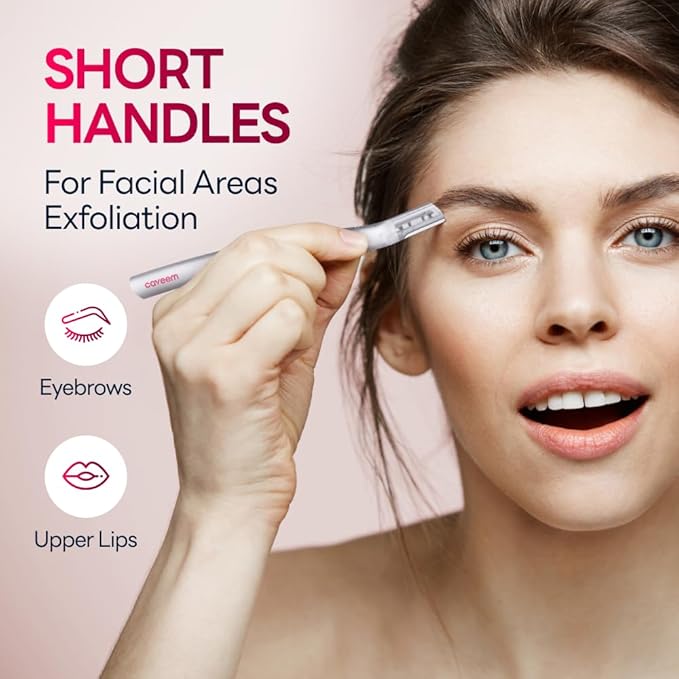 - SAFE EXFOLIATION : Our safety razors for women men are crafted from a stainless steel narrow-gauge Blades design. Use the longer for exfoliating the hair with your cheek, and remove the skin hair with your peach-fuzz with the shorter
