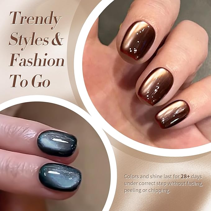 - EASY APPLICATION AND GOOD TENACITY: The Cat Magnetic Eye Gel Nail Polish is long lasting for 21+ days with perfect shine under proper application.Premium formula not easy to peel off - With base gel top coat under the full application process.High durability and intense pigmentation makes it stay last longer and brings you brilliant shine finish.