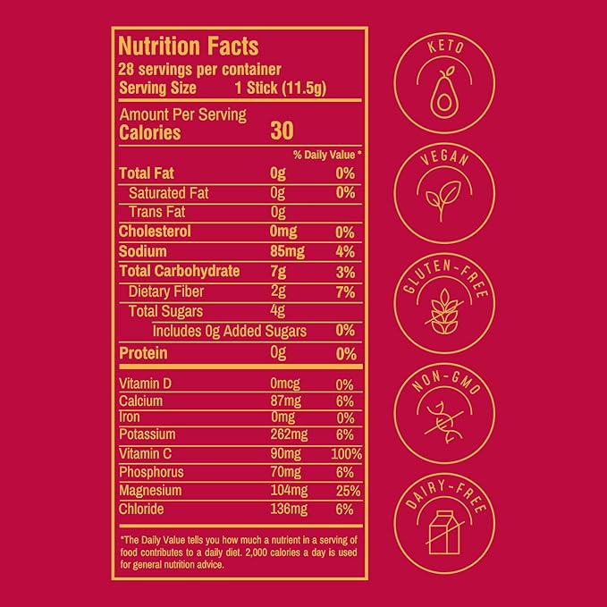 - Just Mix and Go - Simply mix one stick with 12 - 24 oz of water and enjoy. Each package includes 28 Fruit Punch hydration packets, made with organic fruit.