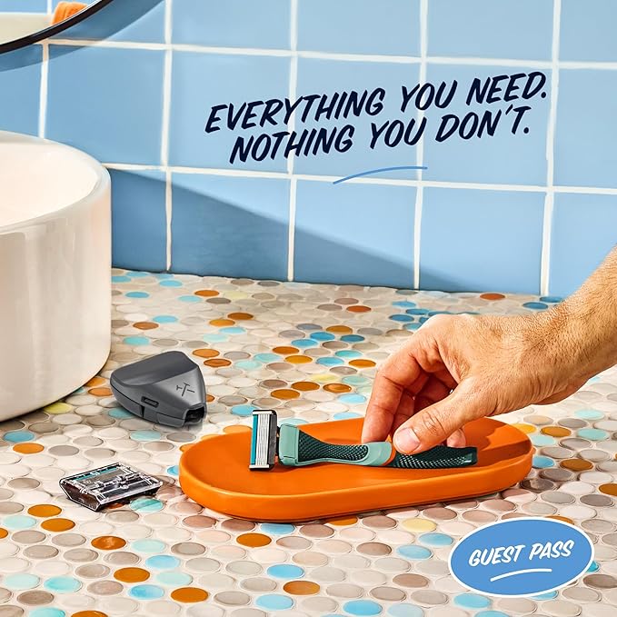 Dollar Shave Club | The Guest Pass Shave Set | 2 Extra Close Refill Cartridges, 1 Handle (Green), 1 Razor Cover
