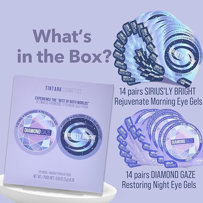 - ULTIMATE HYDROGEL EYEMASK DUO-PACK: Contains 14 pairs of SIRIUS'LY BRIGHT eye masks & 14 pairs of DIAMOND GAZE eye masks. Each pair of eye masks is independent packaging.