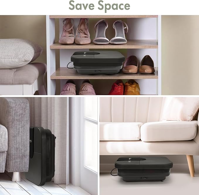 - [Collapsible Design & Space Saving]:Pedicure foot bath could be folded to only 4.53 inches in height. Feet soaking tub can be stored in any narrow corner.This foot spa has a dust-proof cover to keep the inside clean when not used.Note: This collapsible foot bath is suitable for feet up to size 10 !!!