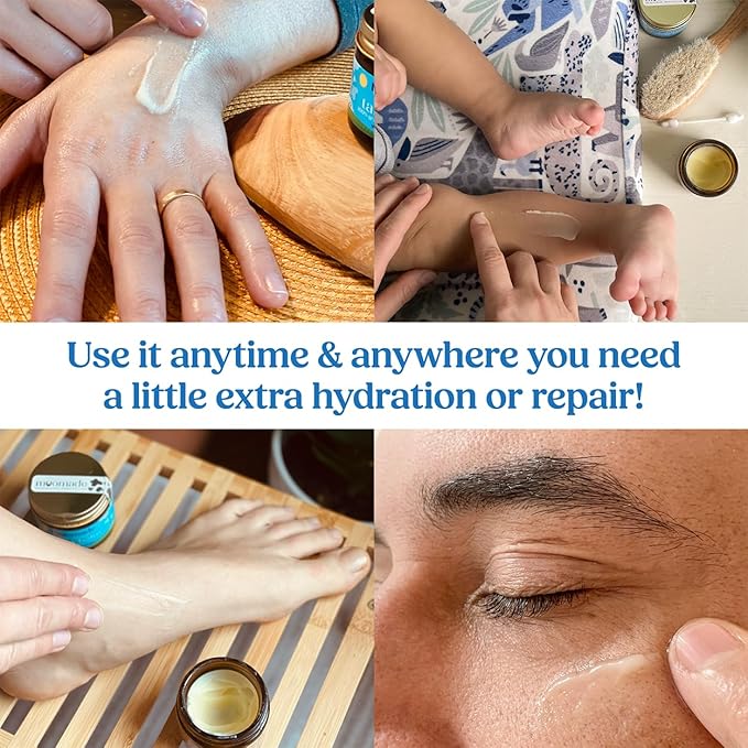 - ALL-IN-ONE SKIN SOLUTION: Simplify your skincare routine with a balm that does it all. Whether you’re moisturizing dry elbows or cracked heels, calming eczema, treating acne scars or softening stretch marks, this balm is versatile enough for face, body, and beyond. Use it as an aftershave, diaper balm, after-sun lotion, or a luxurious nighttime moisturizer.