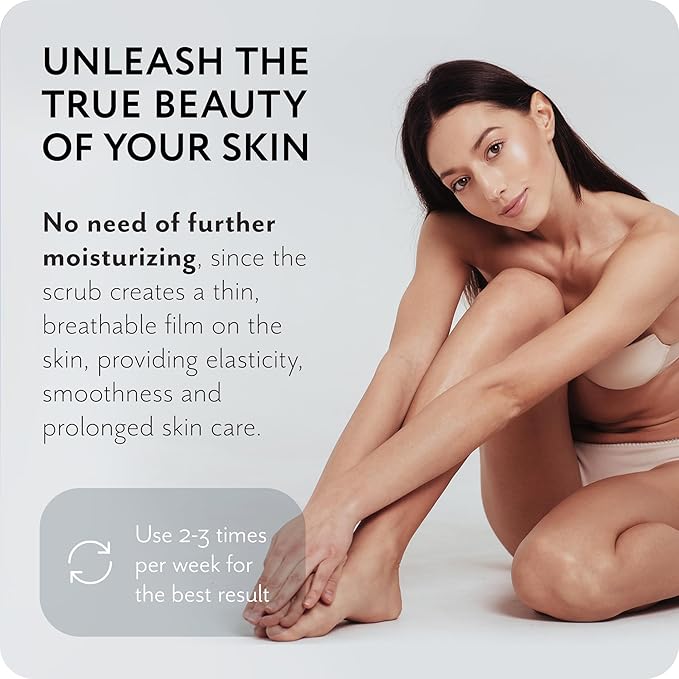 - π₯₯ Powerful Plant-Based Oil Complex: Body scrubs for women contains valuable oils like coconut, sweet almond, avocado, and shea butter. Coconut oil nourishes the skin, retains moisture, and accelerates cell regeneration. Sweet almond oil deeply moisturizes and restores the lipid barrier. Avocado oil reduces inflammation, while shea butter enhances skin firmness and elasticity, slowing down the aging process.