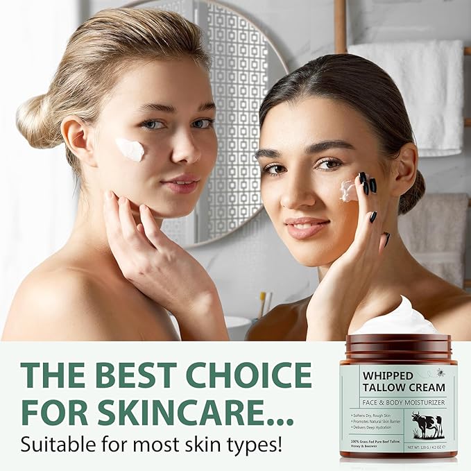 - Suitable for all skin types, our beef tallow moisturizer provides gentle, natural skincare solutions for a healthy, radiant complexion. Say goodbye to dry, dull skin.