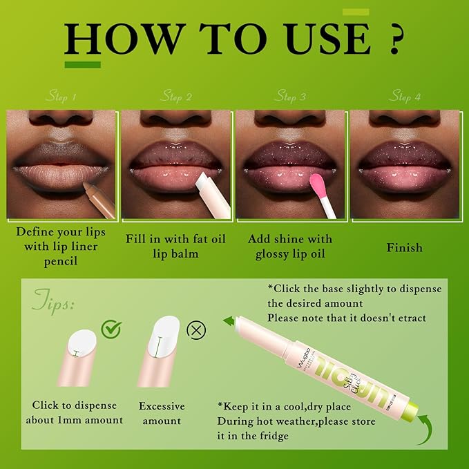 - Lip Combo Makeup Kit: Combines brown lip liner, big brush hydrating sheer pink lip gloss fat oil & click up clear shimmer fat oil lip balm. Ideal for adding a touch of glamour to your daily makeup of a plump and juicy lip look