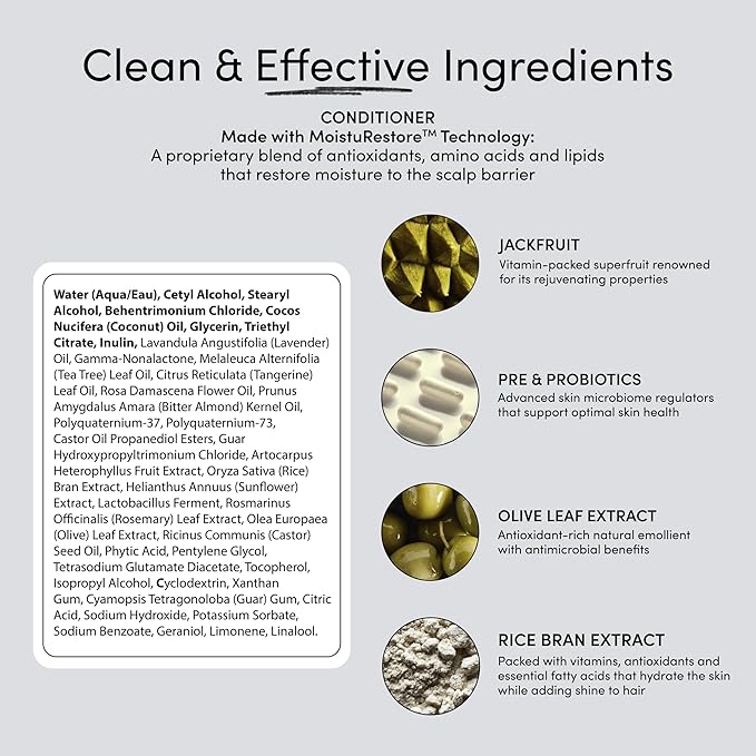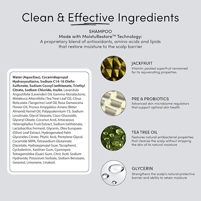 - Clean Ingredients for Healthy Hair: Formulated with vegan, cruelty-free, sulfate-free, and paraben-free ingredients, the Moisture Renewal Trio is powered by MoistuRestore Technology. Enriched with Jackfruit, Tea Tree Oil, Pre & Probiotics, and Glycerin, it restores moisture, balances the scalp, and protects the natural barrier—all while being gentle on color-treated and chemically-treated hair.