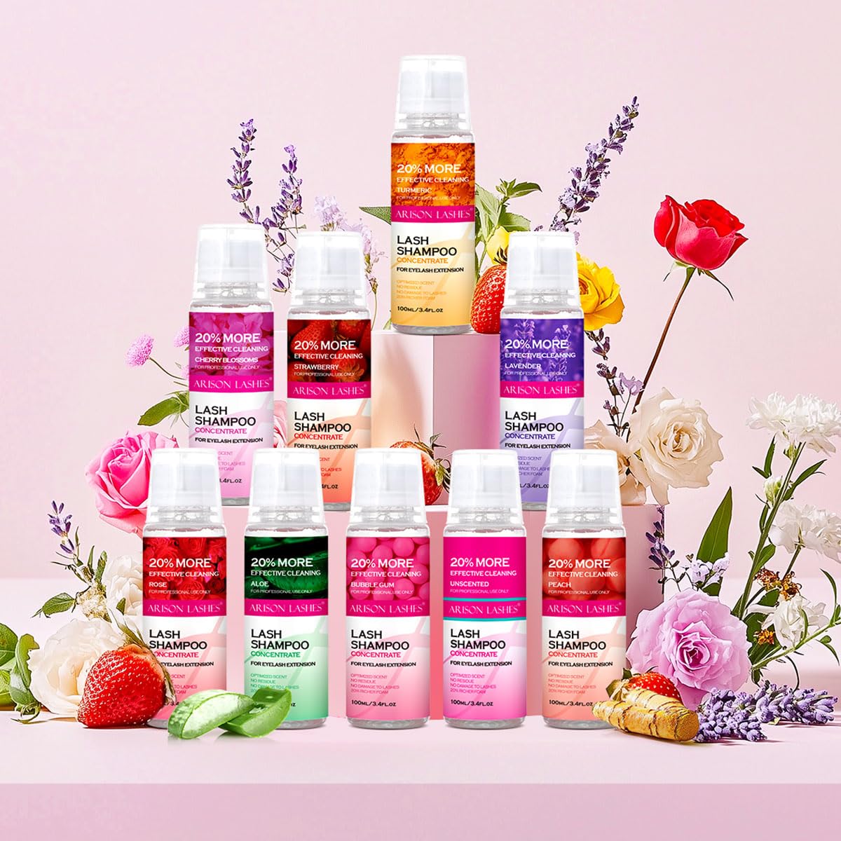 ARISON LASHES Lash Shampoo Concentrate for Lash Extensions 100ML Eyelash Cleanser Concentrate Oil-Free Eyelash Extension Shampoo with Salon Home Care(Rose)