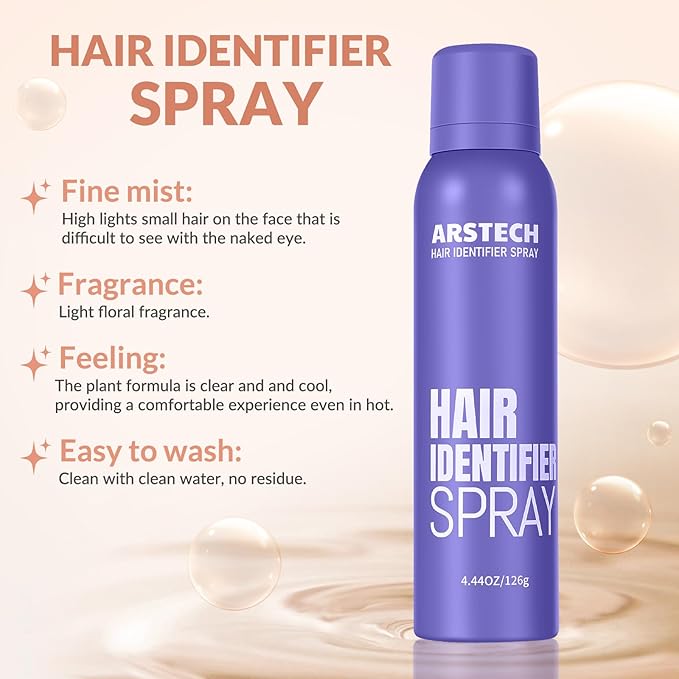- Hair Identifier Spray for Face Shaving: Facial hair identifier spray helps identify and highlight facial hair, including small hairs that are difficult to see with the naked eye, for a shave. Achieve a flawless shave by clearly highlighting the contours of your face and target tiniest hair strands. Our hair identifier spray for face dermaplaning spray not only identifies hair but also deeply moisturizes and enhances the skin, leaving it feeling refreshed.