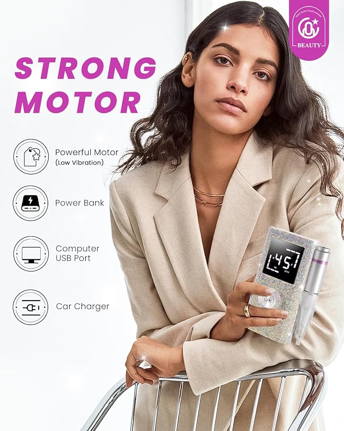 CozyZen Cordless Electric Nail Drill, 45000 RPM Rechargeable Diamond E-File, Portable & Low Noise for Acrylic/Gel Nails, Manicure & Pedicure - Professional & Home Use