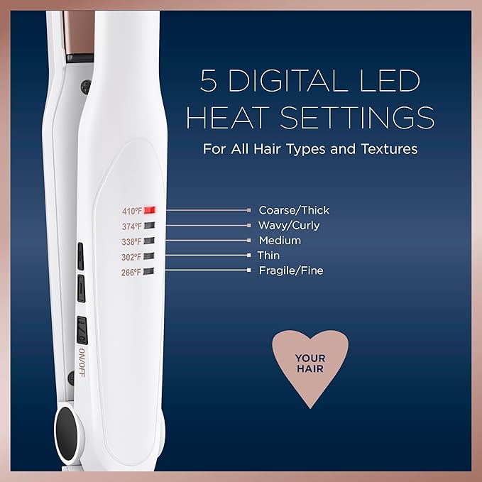 - Styling Control: This ceramic flat iron has extra long floating plates for faster styling with less damage, 5 heat settings including a high heat setting of 410Β°F, and uniform heat recovery for consistent styling