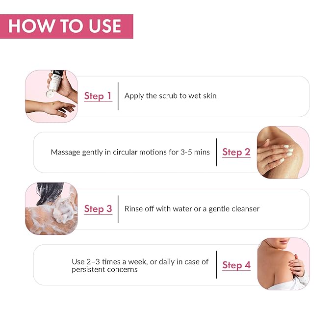 - 🌸 Multi-Purpose & Gender-Neutral Formula This exfoliating scrub is crafted for everyone—men and women alike. Whether you're targeting rough skin, ingrown hairs, or just seeking an effective exfoliator, Anveya's formula delivers. Use it as a body exfoliator or a facial exfoliating scrub alternative for the body.
