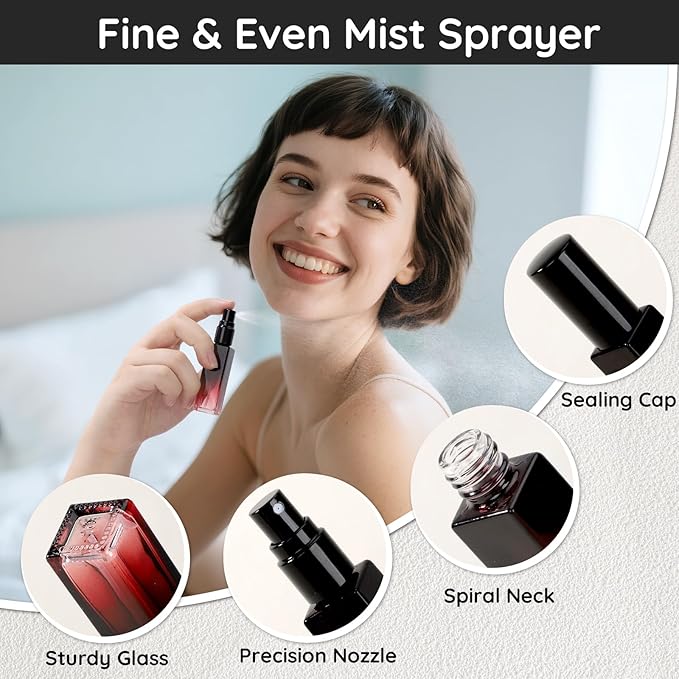 - Leak-proof and Durable: Made of high impact glass, these perfume bottles are built to last. The nozzle is designed to fit tightly, and the structure of the opening features a seal screw, which is solid, wear-resistant. No worry of breaking or leakage