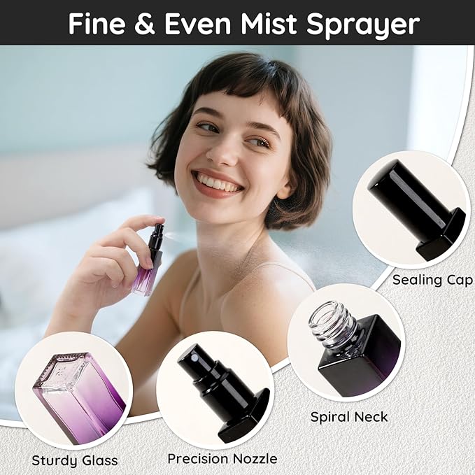 - Leak-proof and Durable: Made of high impact glass, these perfume bottles are built to last. The nozzle is designed to fit tightly, and the structure of the opening features a seal screw, which is solid, wear-resistant. No worry of breaking or leakage
