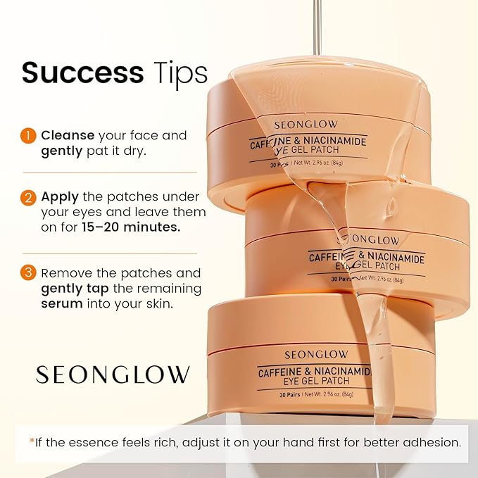 - Target Dark Circles & Puffy Eyes: Our caffeine-infused patches diminish dark circles, reduce puffiness, and smooth eye bags by enhancing circulation and hydration. Enjoy visibly refreshed, radiant under-eye skin that instantly brightens your look.