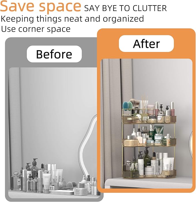 - 【Multiple Size Options Save Space 】The 2-tier design measures 13.6 x 10 x 12.3 inches, while the 3-tier version measures 13.6 x 10 x 18.1 inches. The countertop organizer can effectively save your space. Suitable for various scenarios such as bathroom, kitchen, bedroom, vanity, etc