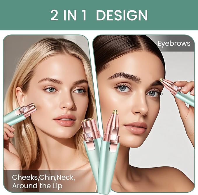 - GENTLE & PAINLESS: The 2-1 women's hair remover is suitable for daily use to keep up with hair regrowth and leave it smooth, specially designed for use on eyebrows, upper and lower lip, cheeks, chin, and neck. Works on peach fuzz or fine hair. Go slow with circular movements and it will do the job