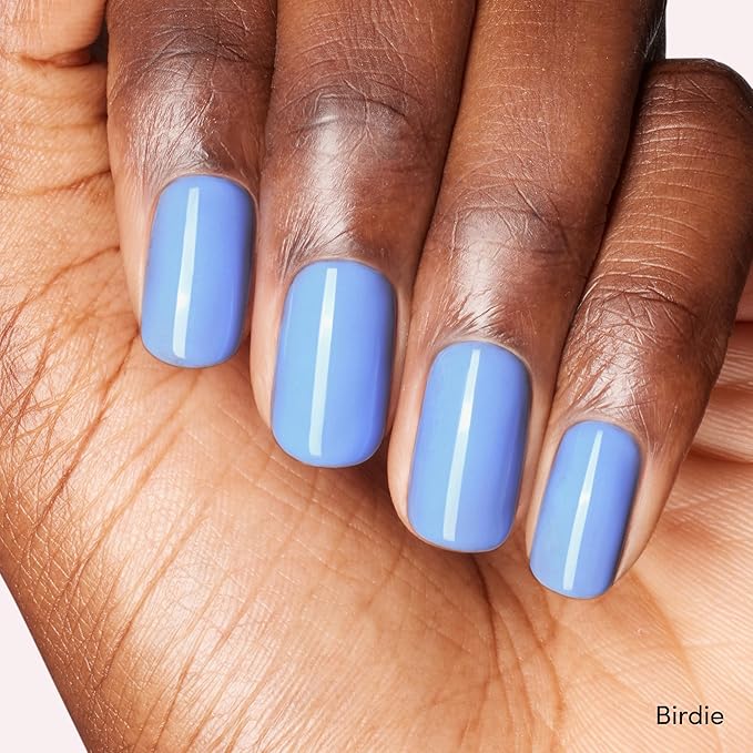 - Includes 2 Gel Nail Polishes: 1-step gel nail colors Birdie (periwinkle blue) and Silver Topper (sheer silver glitter)
