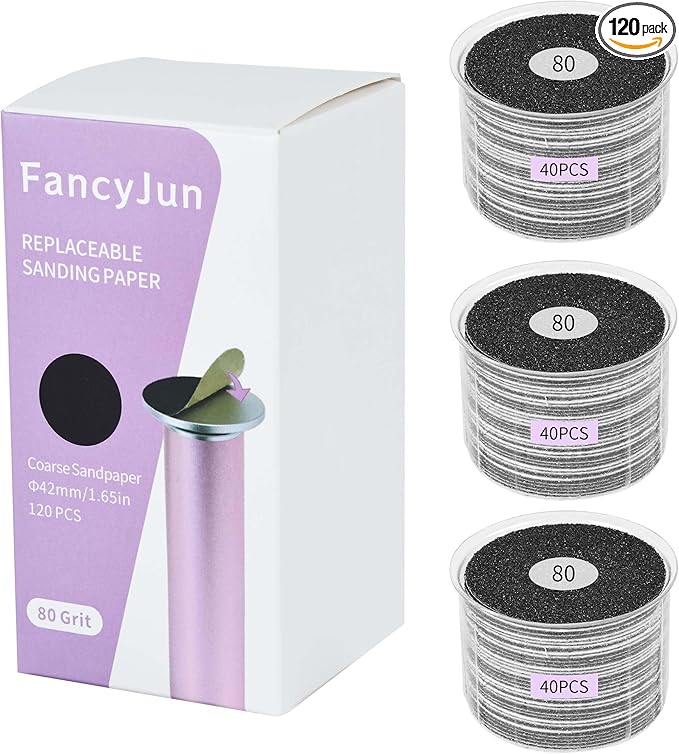 - Long-Lasting 120pcs/Set – Durable coarse grit sandpaper discs for extended use on dry, rough skin.