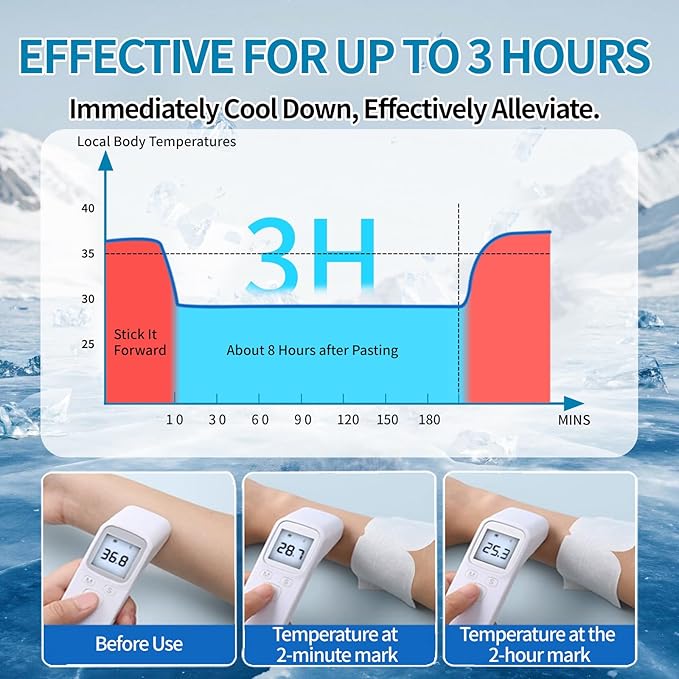 - Super Easy & Refreshing to Use: Just peel a gel patch from its pack, place over clean skin, and relax! In 10-20 minutes, feel the refreshing coolness work its magic – perfect at home, work, or on the go. For an extra-chilled effect, store patches in your fridge before use!