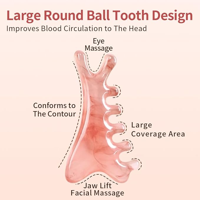 - Natural Resin Material: The massage comb is made of high-quality natural resin,the red wire drawing of each massage combs will be different. Each design is unique and a romantic gift. Gua Sha facial tools are crystal clear and gentle,non irritating to the skin, ensuring smooth sliding and effectively promoting blood circulation. The gua sha comb has a super smooth surface texture, with a smooth touch, durability, easy care and handy.