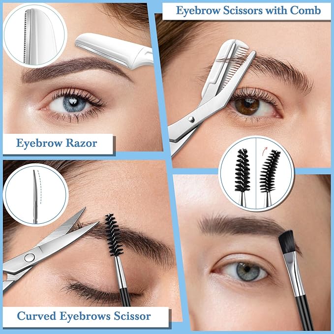 - Eyebrow Razor & Brush: Eyebrow razor has Removable blade and the blade can be removed from the handle, stainless-steel blade is sharpness with protective net does not hurt the skin, 180Β° foldable Rotation design, easy to carry and prevent scratches. Eyebrow brush has one head eyelash brush and eyebrow groomer on another side. Double side eyebrow comb will help you evenly to separate eyebrow, keep your eyebrow tidy and clean. And can easily separate lashes after curling and mascara application