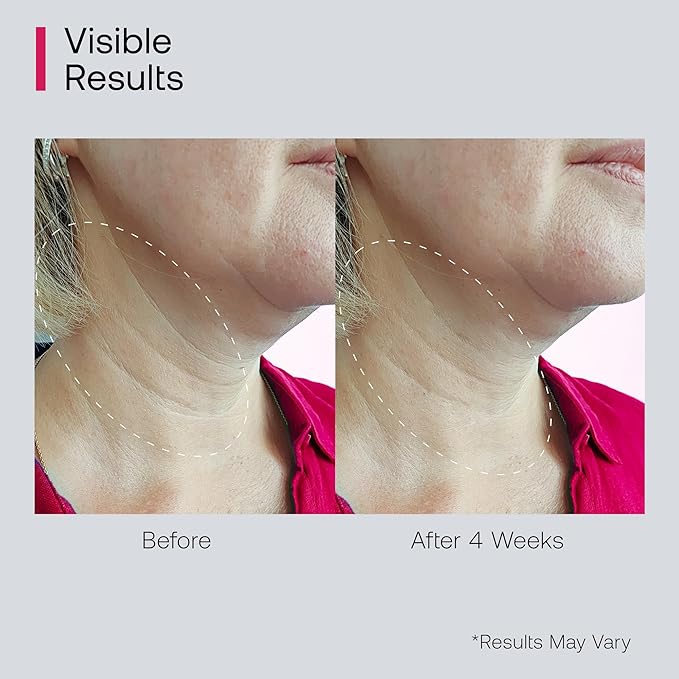 - Visible Results in 4-8 Weeks: Besides instantly improving skin texture, most of our customers experienced a reduction in neck lines by 27.5%, neck line volume by 38.8%, enhanced firmness by 14.5%, enhanced skin tone by 12.5% and improved skin elasticity by 32.1%. Results may vary. Consistency and patience are key to achieving optimal outcomes. If you are not satisfied after 2 months of use, we will send you an additional bottle FOR FREE, along with a FULL REFUND.