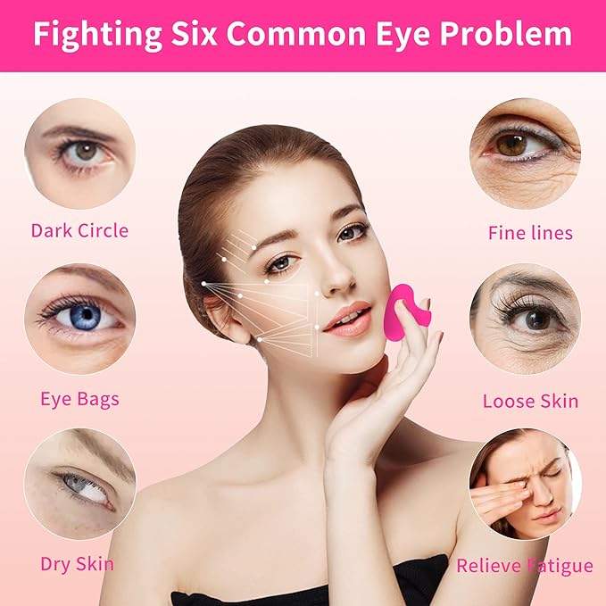 - 【Quiet & Eye Massage Tool】Eye massager can reduce the dark circles and puffiness under the eyes caused by late night or insomnia, improve the sagging skin and fine lines under the eyes, help restore the delicate skin under the eyes, relieve eye fatigue at work, solve a variety of eye problems, eye care tools with 6000 ~ 8000 vibrations / minute, so that your facial skin to keep in motion. Ultra-quiet design allows you to use at home or in the office at any time.